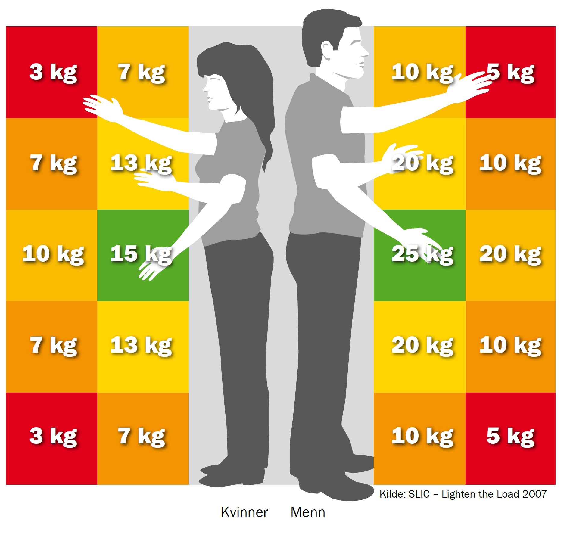 • Vurder alltid belastningen og risikoen opp mot den enkelte arbeidstakers forutsetninger og helse.